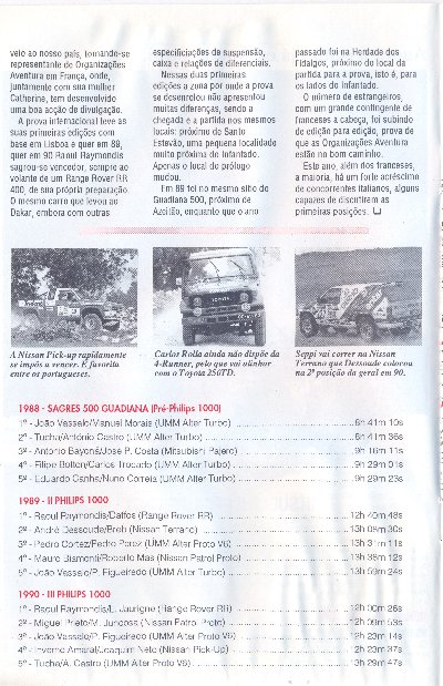 Aqui vão algumas páginas seleccionadas do programa oficial da Baja Portugal 1000 de 1989 (o ficheiro pdf com estas páginas em tamanho real está aqui: http://www.4shared.com/document/3hPQFEfz/Philips1000_1991_programa_ofic.html )